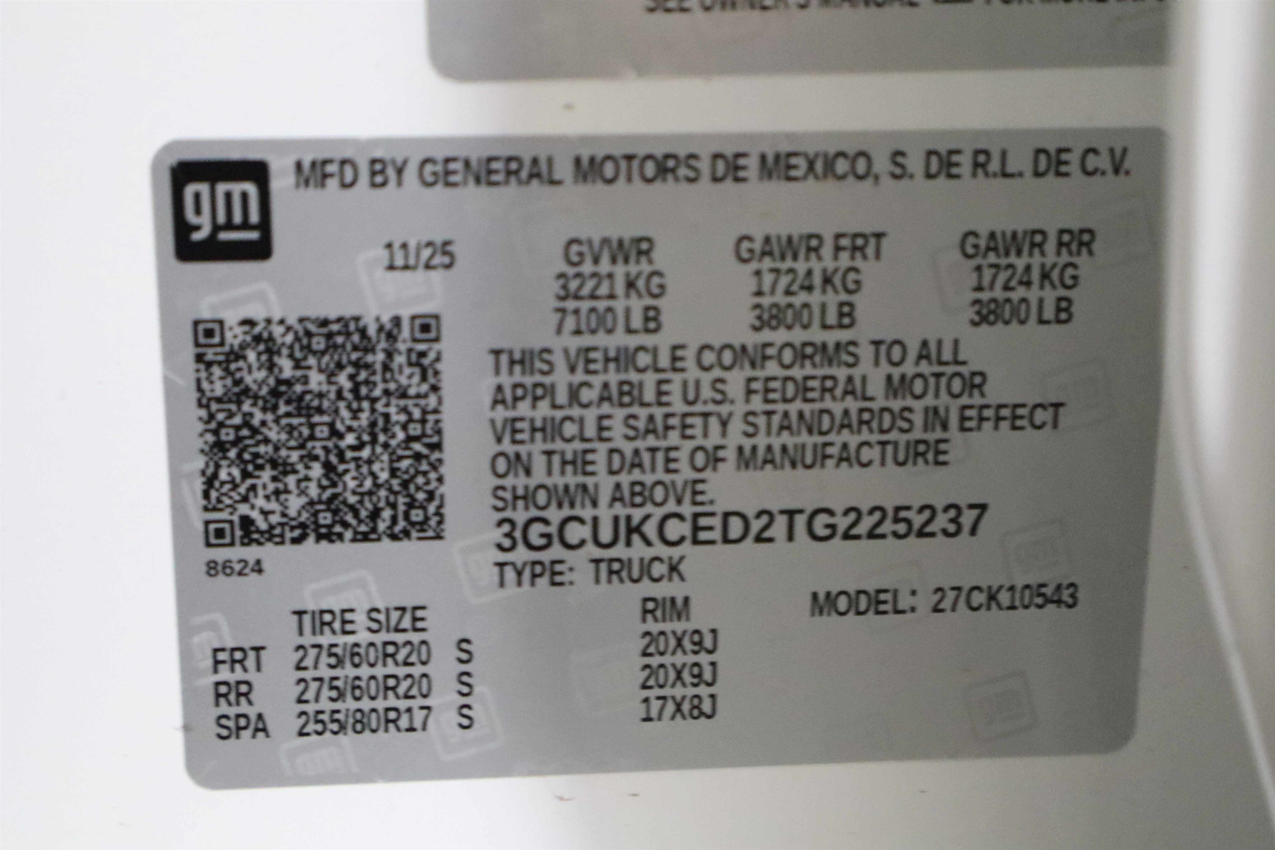 - Front Tire Size: 275/60R20SL