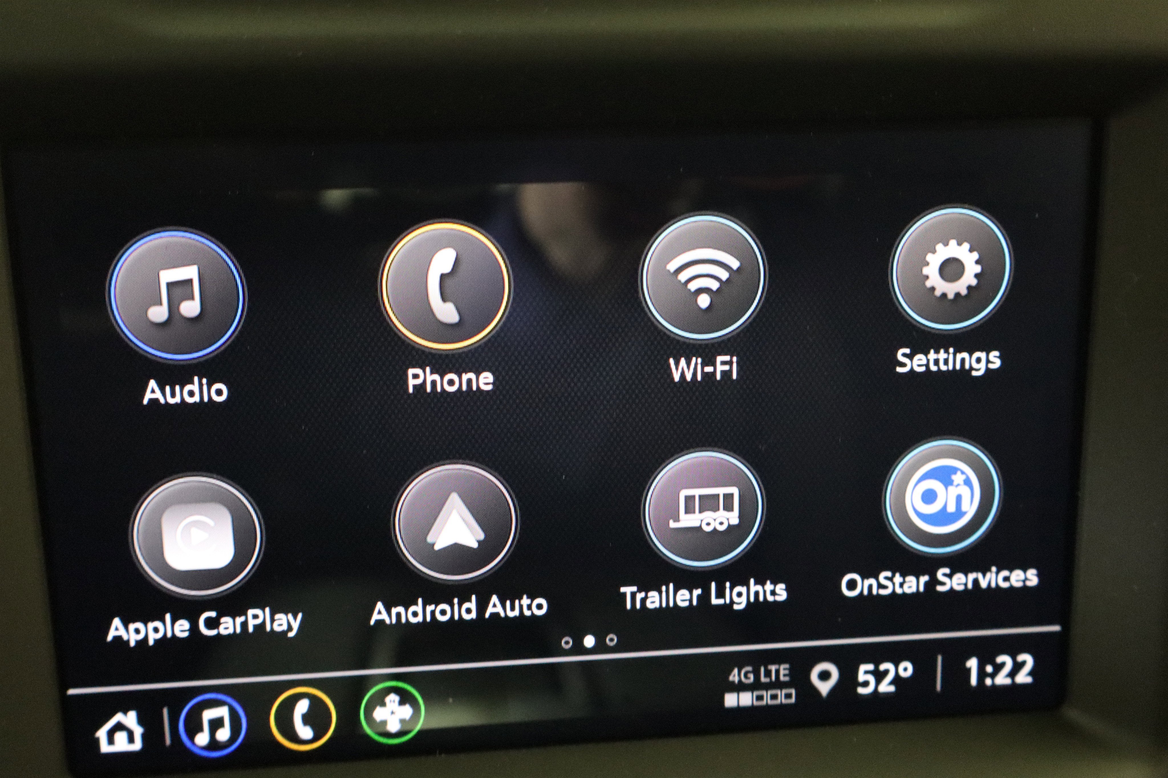 - Audio system, Chevrolet Infotainment 3 system 7" diagonal HD color touchscreen, AM/FM stereo, Bluetooth® audio streaming for 2 active devices, voice command pass-through to phone, Wireless Apple CarPlay and Wireless Android Auto compatibility