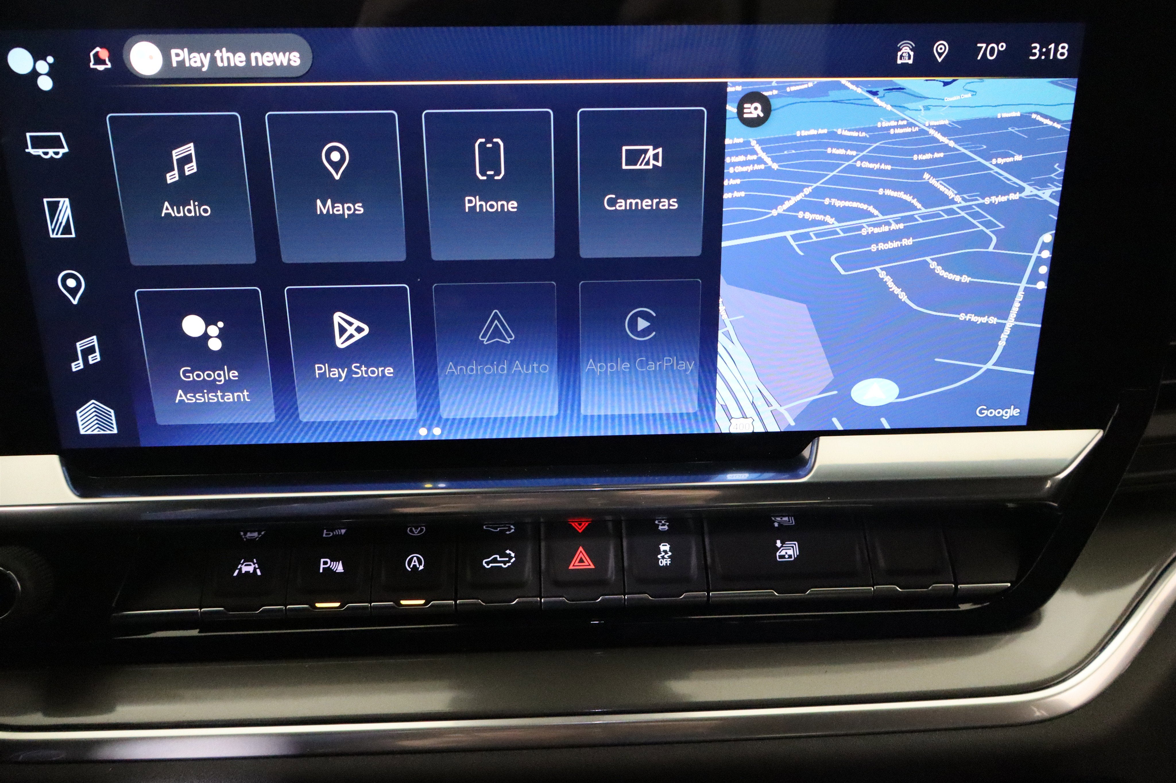 - Audio system, Chevrolet Infotainment 3 Premium system with Google built-in compatibility (select service plan required, terms and limitations apply) including navigation capability, 13.4" diagonal HD color touchscreen, includes multi-touch display, AM/FM stereo, Bluetooth® streaming audio for music and most phones; featuring Wireless Apple CarPlay and Wireless Android Auto capability for compatible phones, advanced voice recognition, in-vehicle apps, personalized profiles for infotainment and vehicle settings