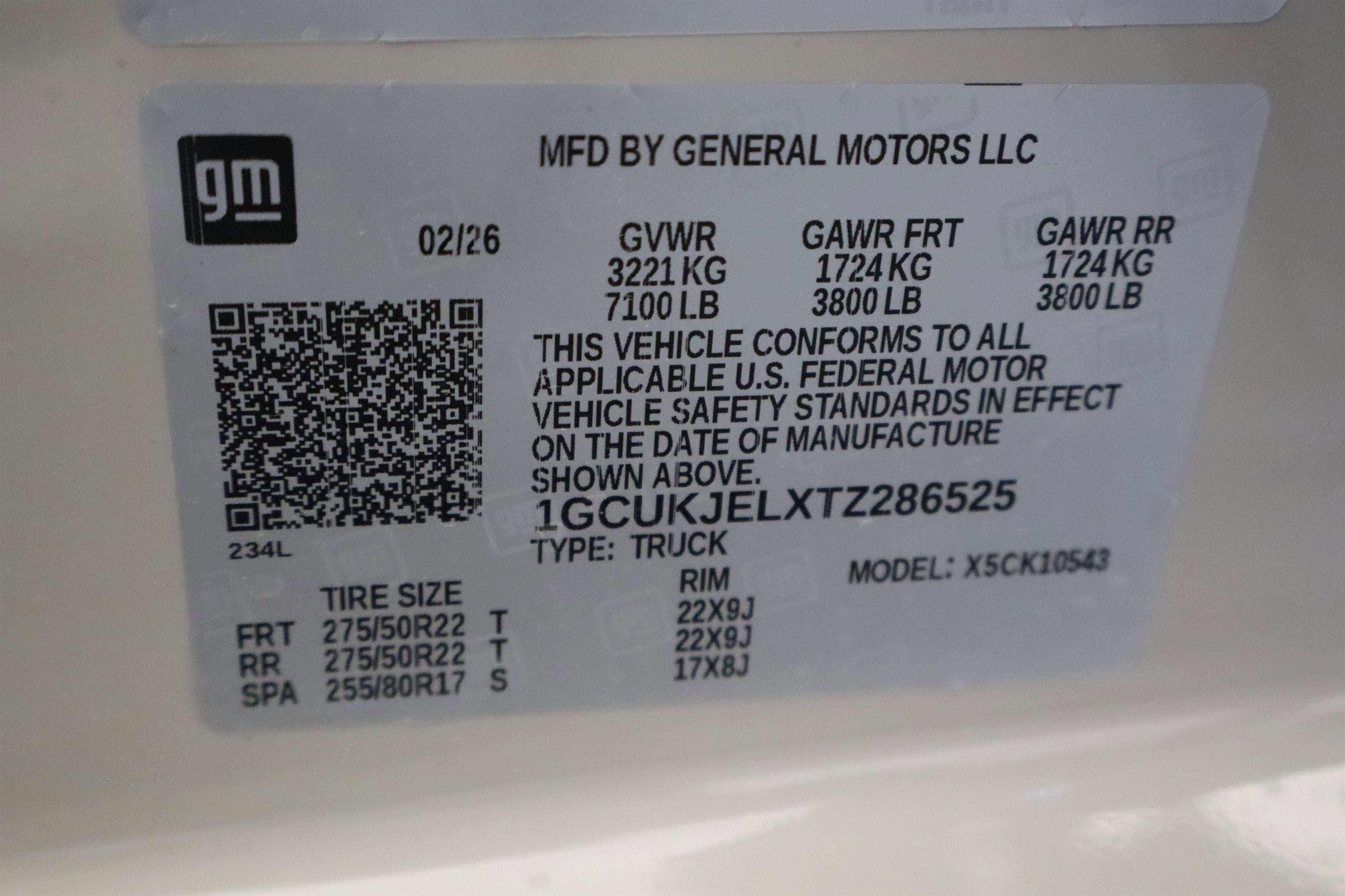 - Front Tire Size: 275/50R22SL