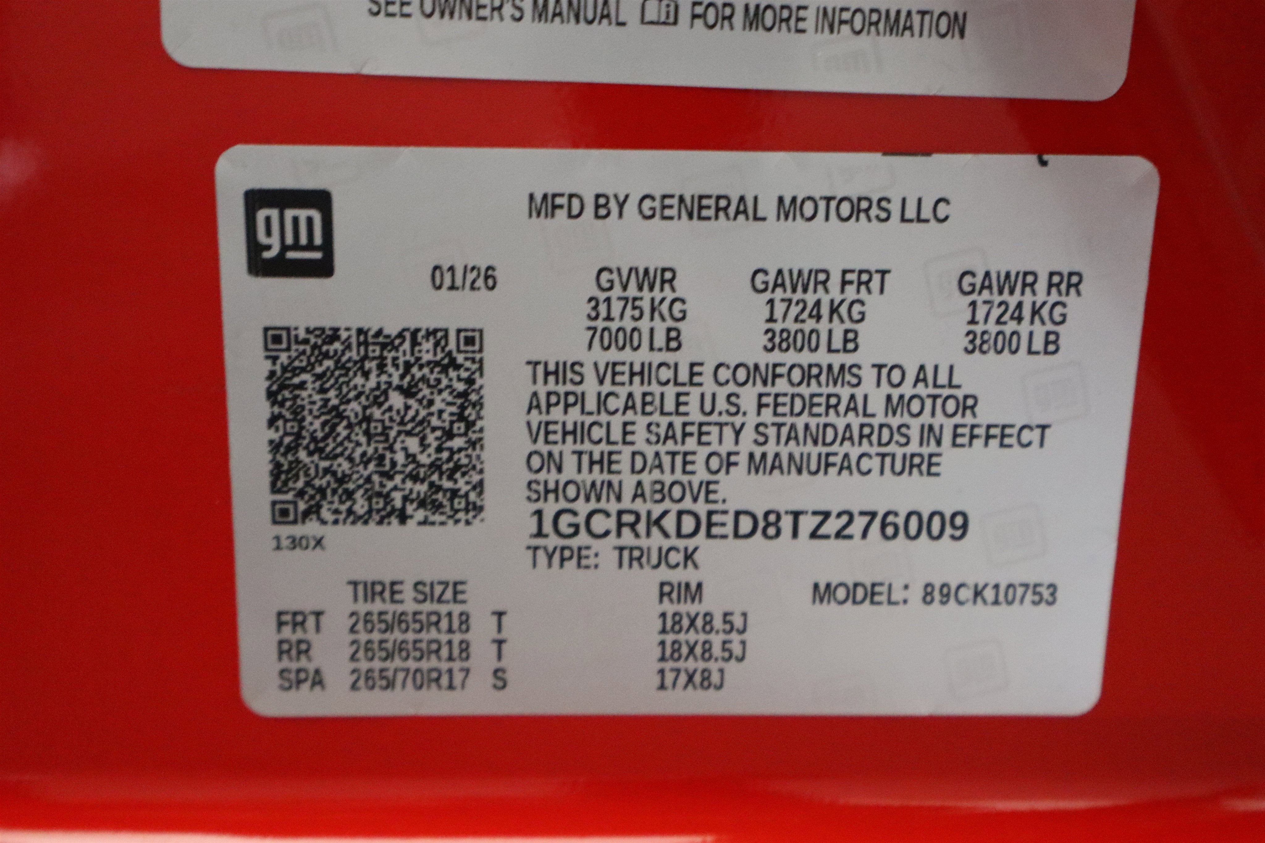 - Rear Tire Size: 265/65R18SL