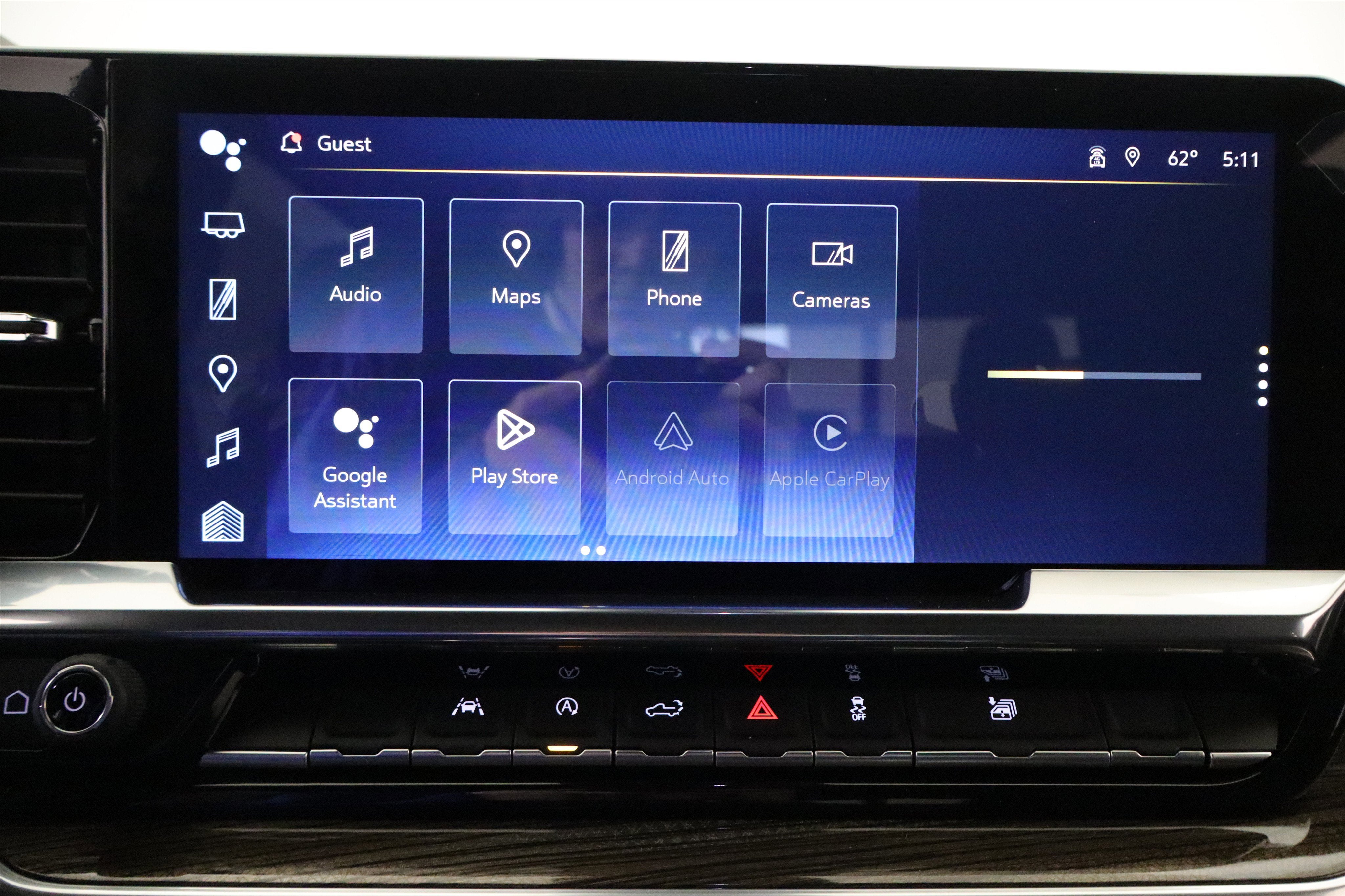 - Audio system, Chevrolet Infotainment 3 Premium system with Google built-in compatibility (select service plan required, terms and limitations apply) including navigation capability, 13.4" diagonal HD color touchscreen, includes multi-touch display, AM/FM stereo, Bluetooth® streaming audio for music and most phones; featuring Wireless Apple CarPlay and Wireless Android Auto capability for compatible phones, advanced voice recognition, in-vehicle apps, personalized profiles for infotainment and vehicle settings
