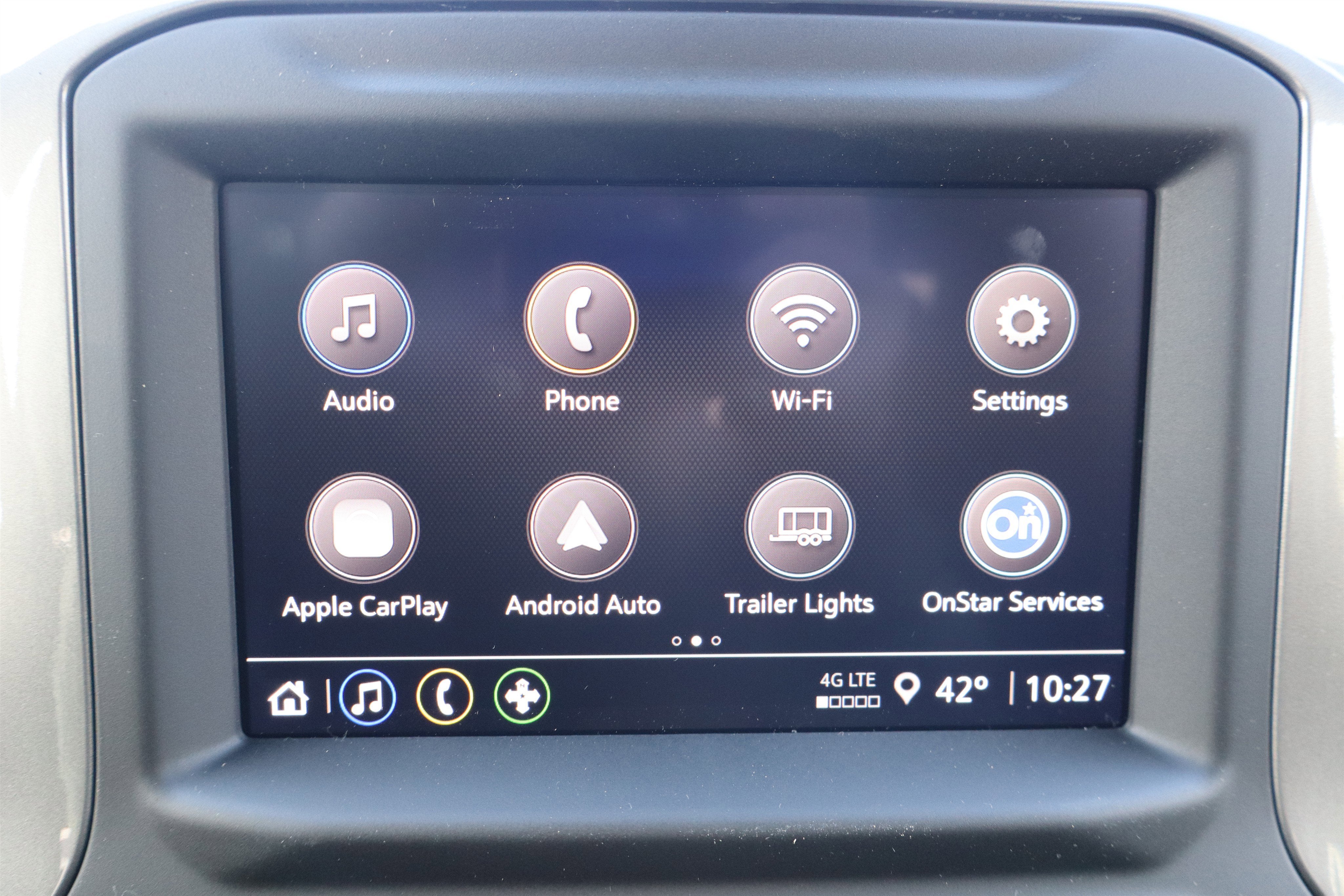 • Audio system, Chevrolet Infotainment 3 system 7" diagonal HD color touchscreen, AM/FM stereo, Bluetooth® audio streaming for 2 active devices, voice command pass-through to phone, Wireless Apple CarPlay and Wireless Android Auto compatibility