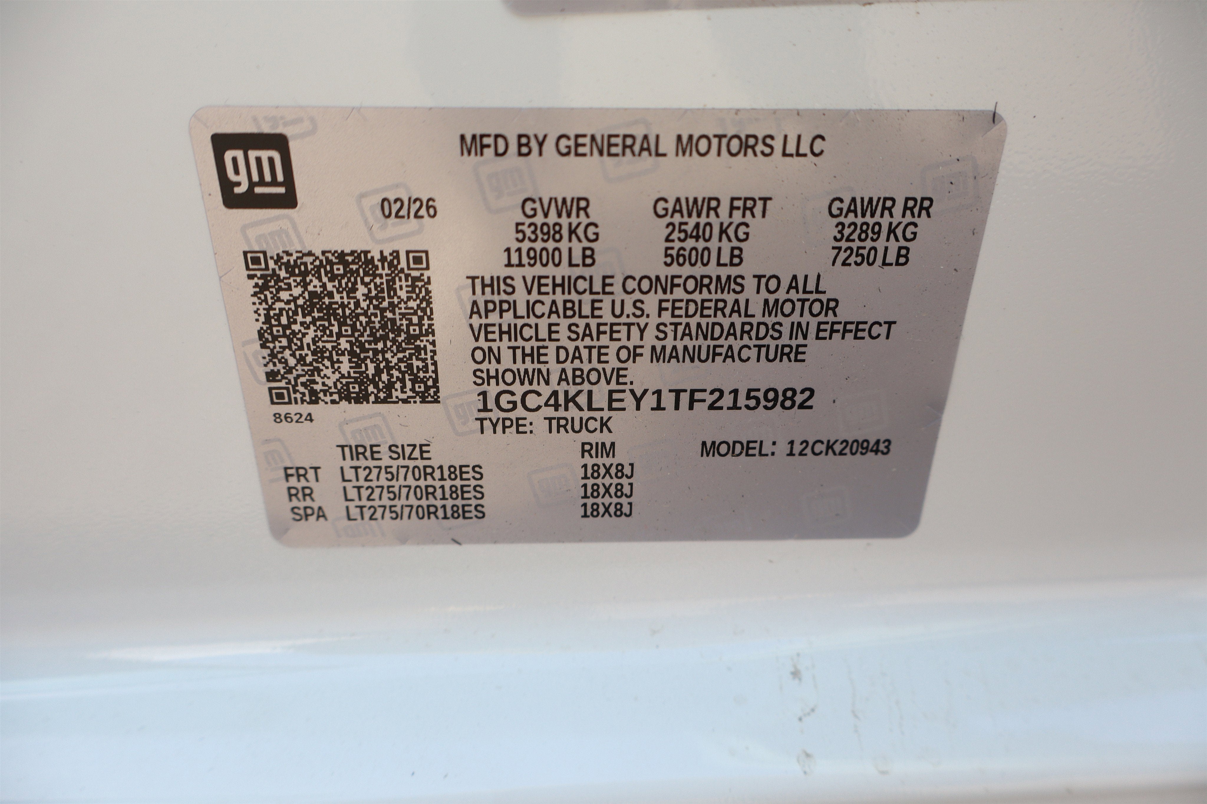 VIN: 1GC4KLEY1TF215982