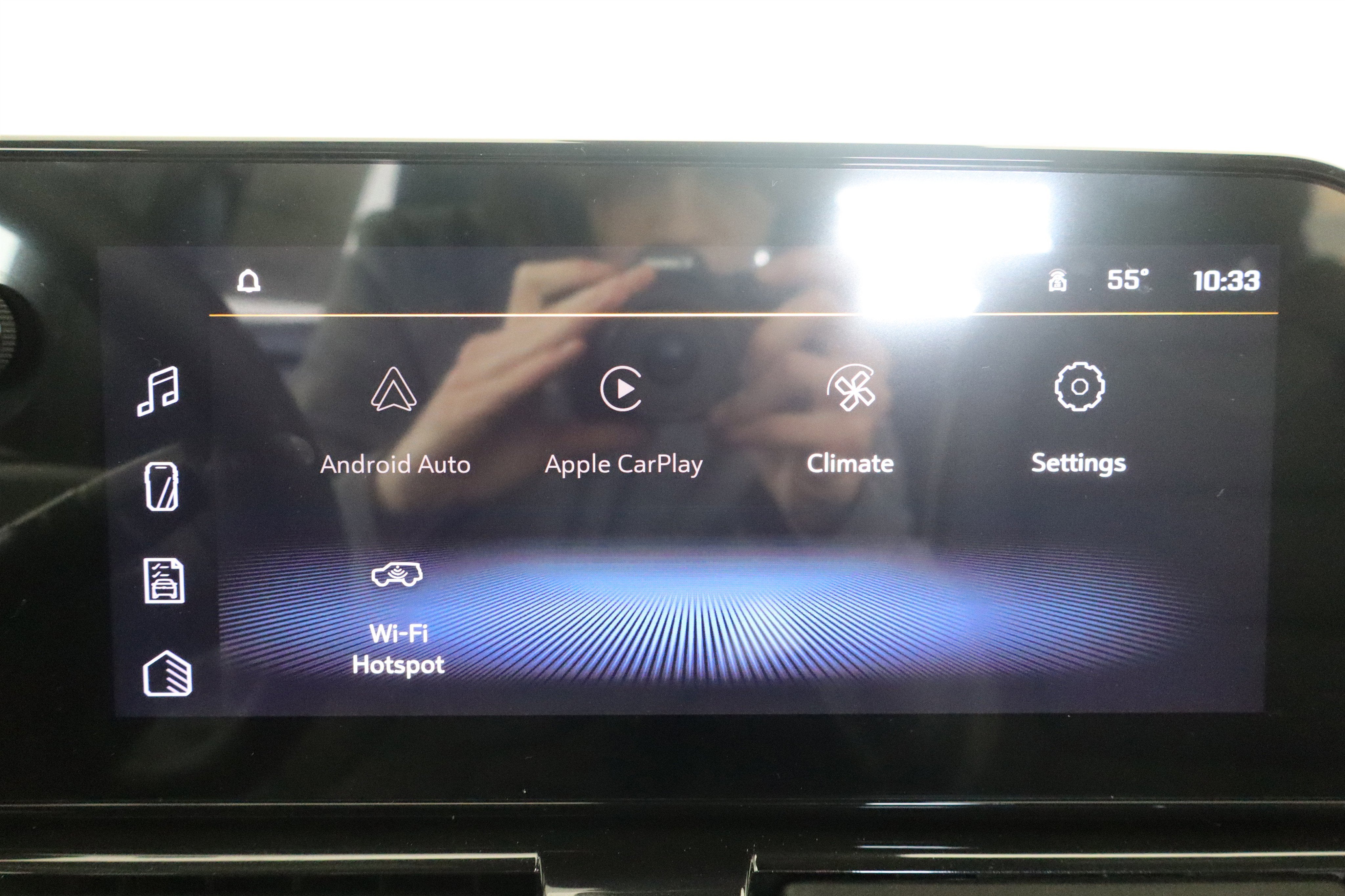 - Audio system, 11" diagonal HD color touchscreen, AM/FM stereo. Additional features for compatible phones include: Bluetooth® audio streaming for 2 active devices, voice command pass-through to phone, wireless Apple CarPlay and wireless Android Auto capable