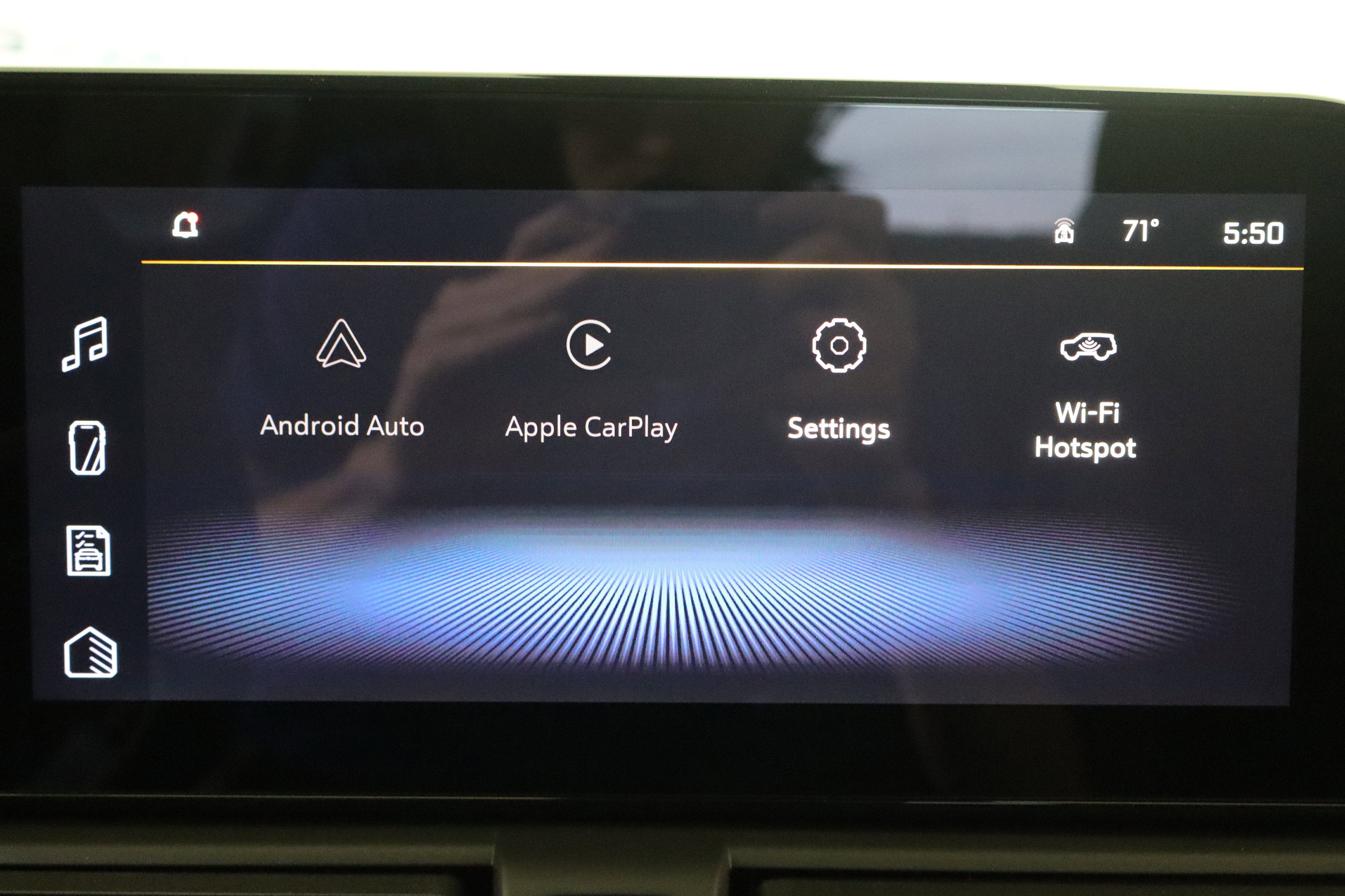 - Audio system, 11" diagonal HD color touchscreen, AM/FM stereo. Additional features for compatible phones include: Bluetooth® audio streaming for 2 active devices, voice command pass-through to phone, wireless Apple CarPlay and wireless Android Auto capable