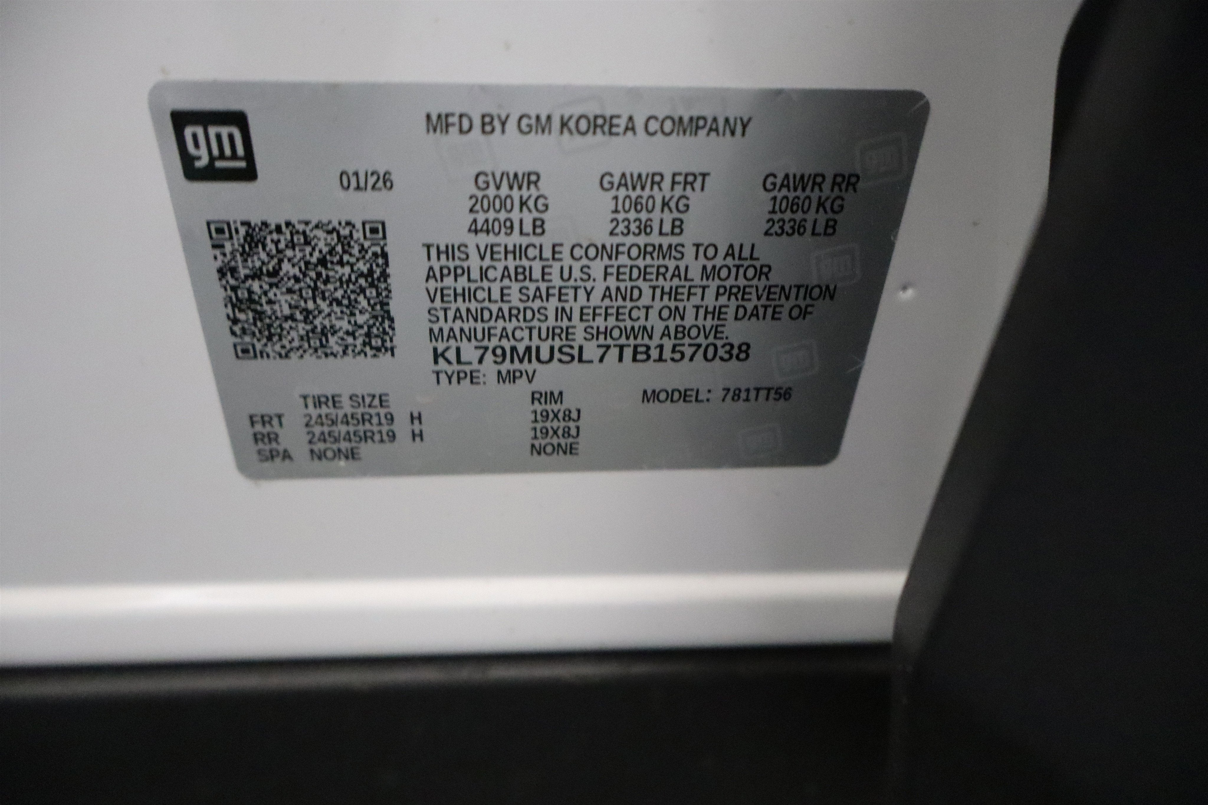 - Tires, 245/45R19 all-season, blackwall