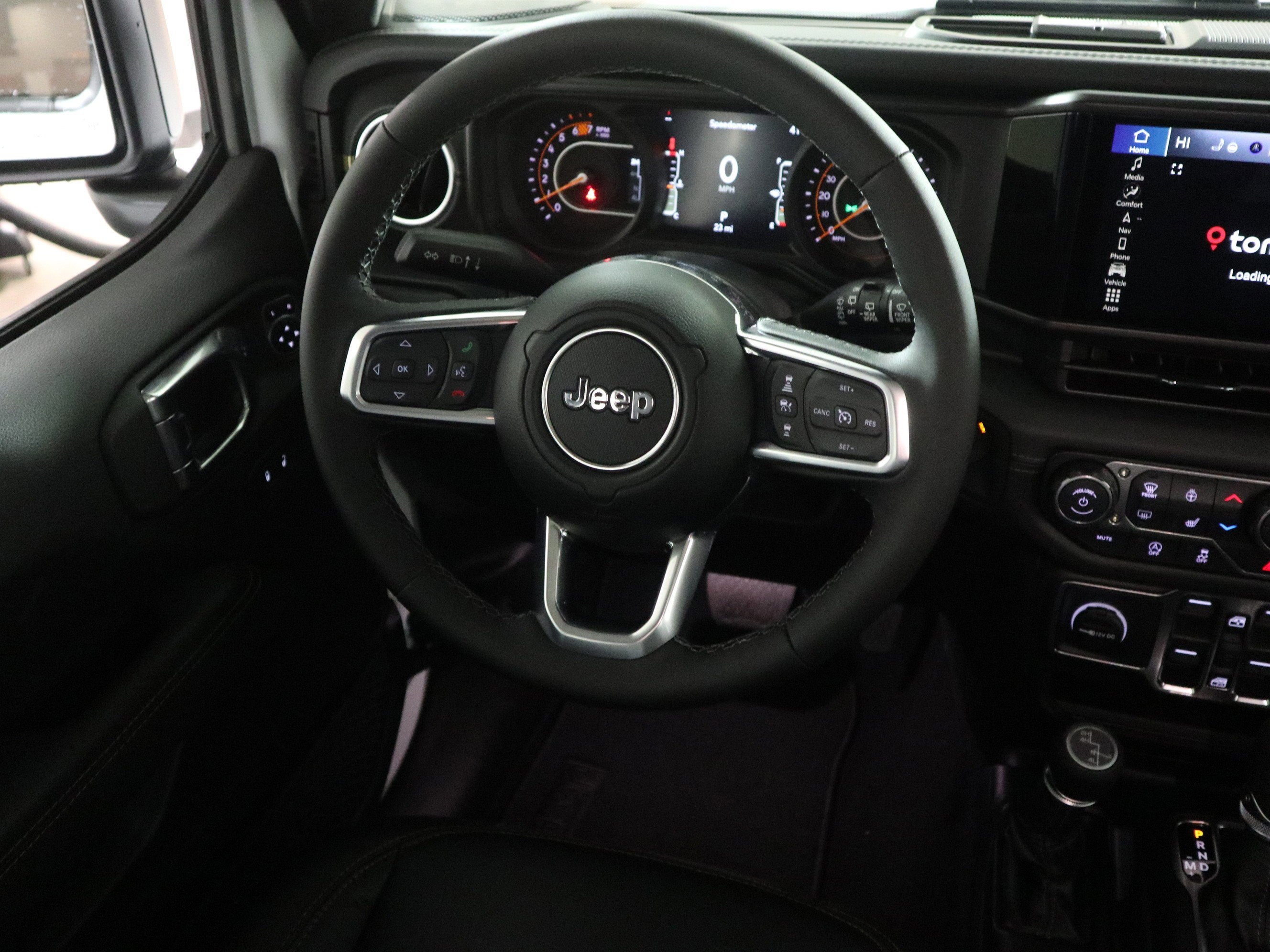 - SAHARA POPULAR EQUIPMENT GROUP -inc: Alpine Premium Audio System Integrated Off-Road Camera Blind Spot & Cross Path Detection HD Radio Rear View Auto Dim Mirror Side Steps Integrated Voice Command w/Bluetooth® Uconnect 5 Nav w/12.3 Display GPS Navigation Auto High Beam Headlamp Control Universal Garage Door Opener Connected Travel & Traffic Services ParkSense Rear Park Assist System