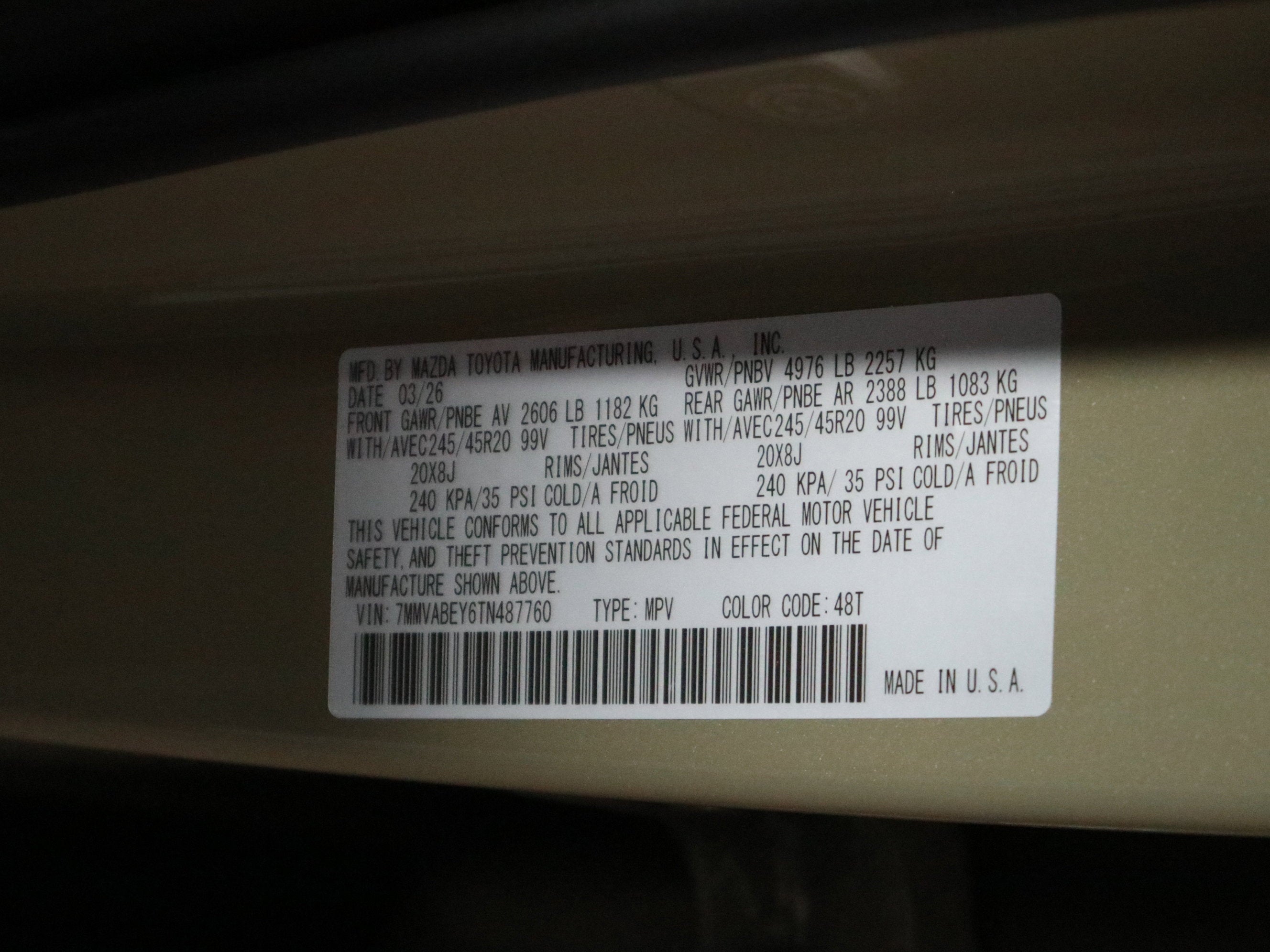 - Front Tire Size: P245/45HR20