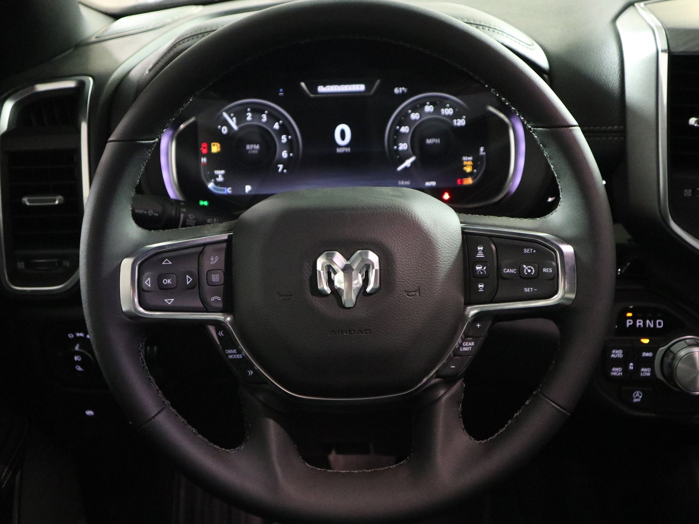 - LARAMIE LEVEL 2 EQUIPMENT GROUP -inc: Rain Sensitive Windshield Wipers 14.4 Touchscreen Display Front Passenger Interactive Display Radio: Uconnect 5 Nav w/14.4 Display harman/kardon 19 Speaker Premium Sound Cluster 12 TFT Color Display Power Tailgate