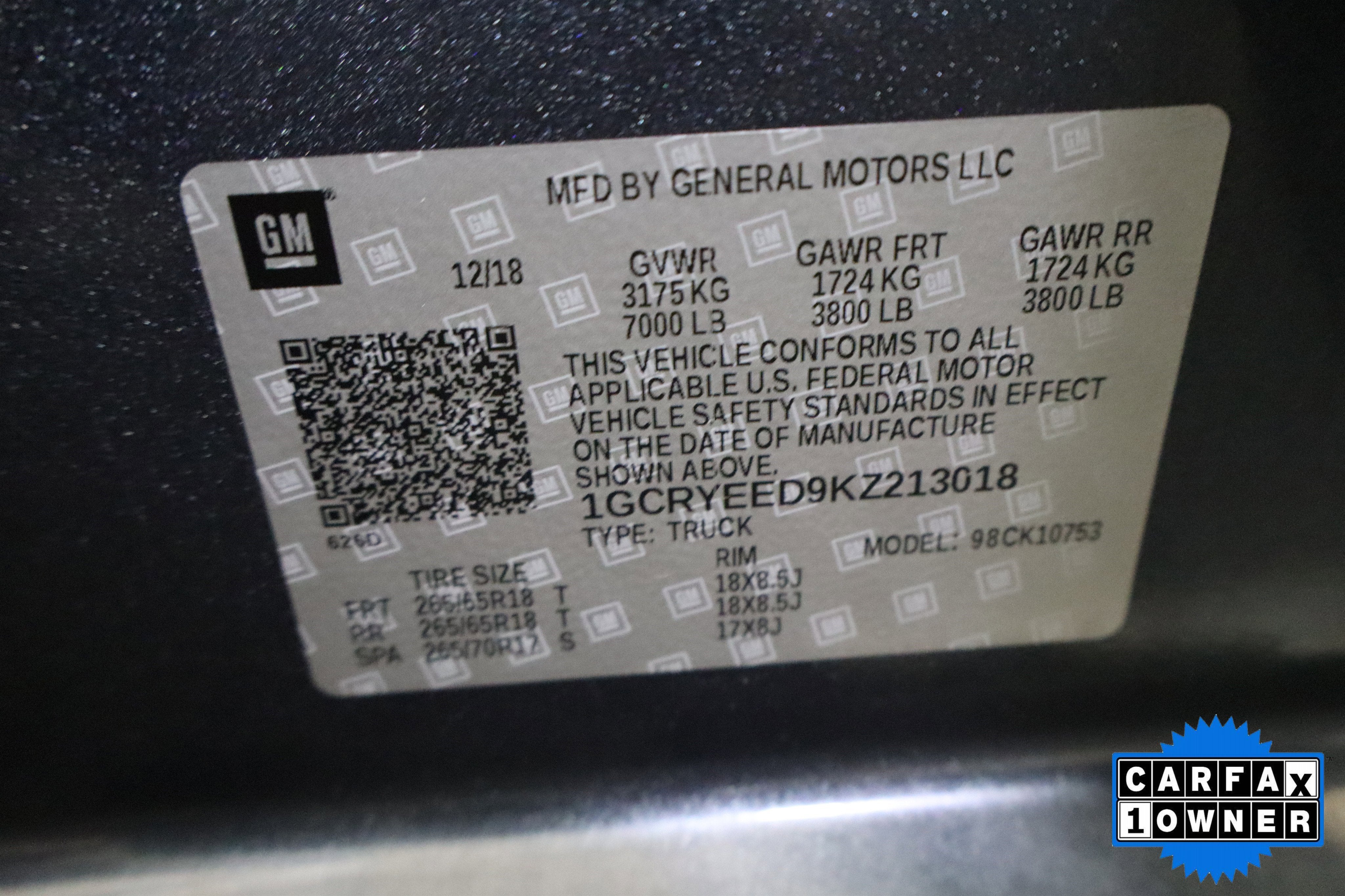 - Front Tire Size: 265/65R18SL