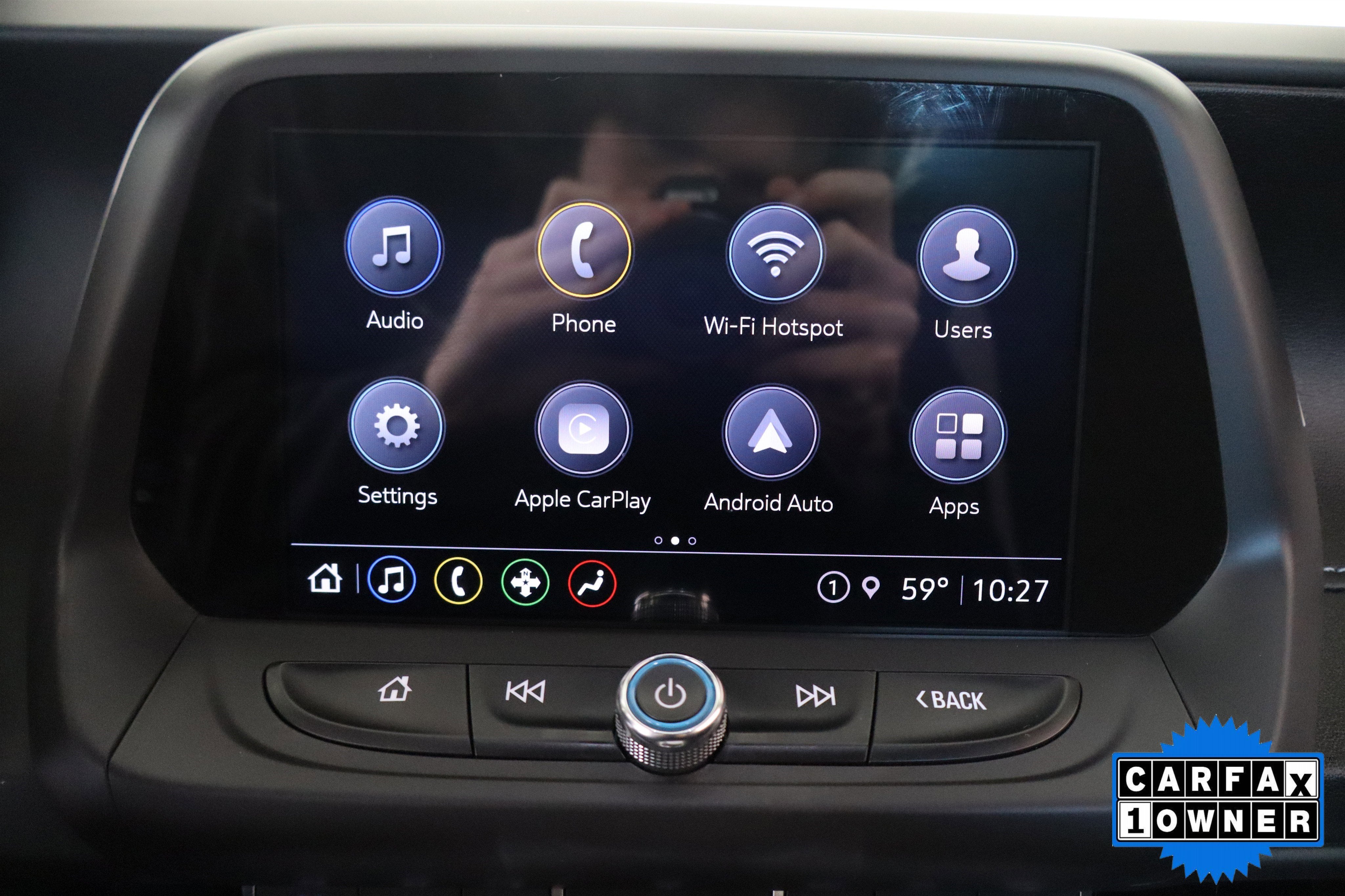- Audio system, Chevrolet Infotainment 3 system, 7" diagonal color touchscreen, AM/FM stereo. Additional features for compatible phones include: Bluetooth® audio streaming for 2 active devices, voice command pass-through to phone, Apple CarPlay and Android Auto capable.