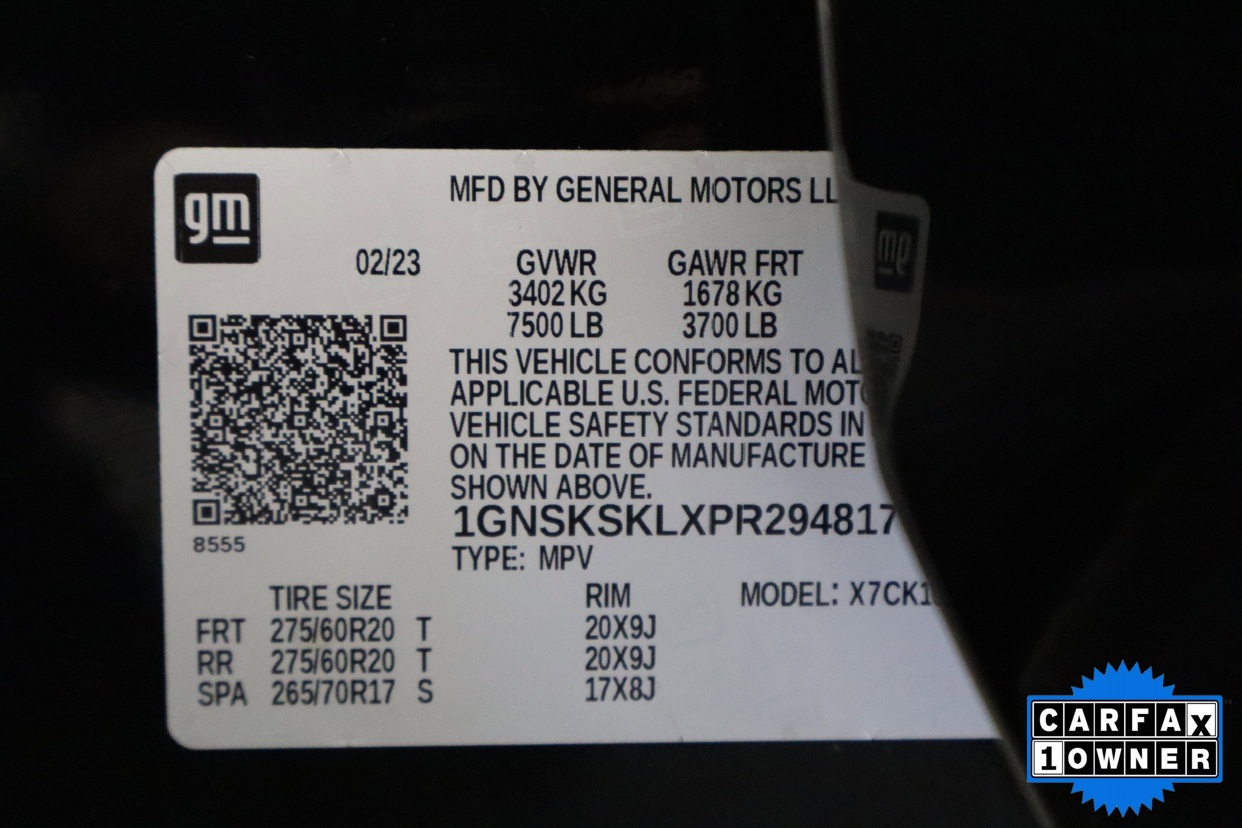 - Front Tire Size: 275/65R20SL